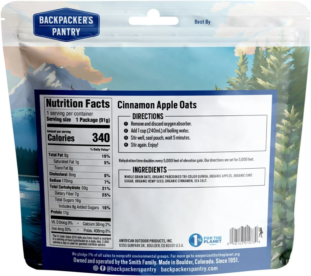 Get ready for a day of outdoor activities with a warm, hearty multigrain breakfast that will keep you satisfied till lunch: The Backpacker’s Pantry Organic Hot Cinnamon Apple, Oats & Quinoa cereal.