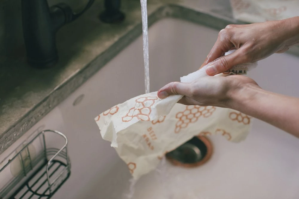 - Wash in cool water and mild dish soap, then allow to air dry