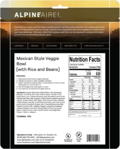AlpineAire Foods Mexican-Style Veggie Bowl – 1 Serving – None