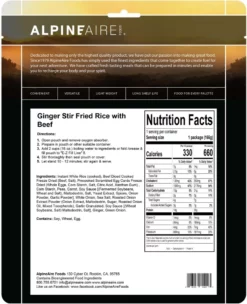 AlpineAire Foods Ginger Stir Fried Rice with Beef – 1 Serving – None