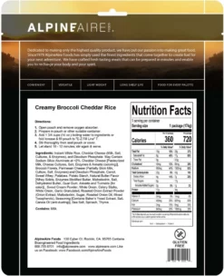 AlpineAire Foods Creamy Broccoli Cheddar Rice – 1 Serving – None