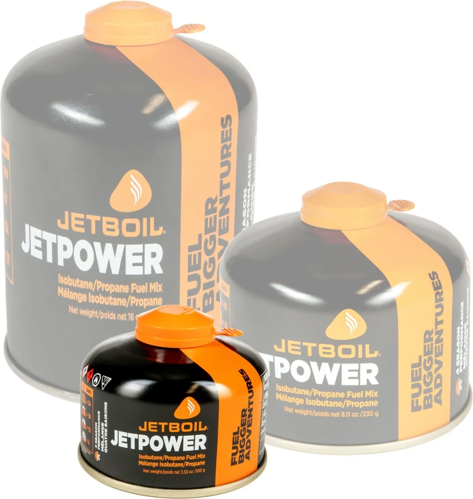 Filled with a high-performance four-season fuel, Jetboil Jetpower canister delivers high vapor pressure for reliable use in cold weather. The 100g size is perfect for shorter or fast-and-light trips.