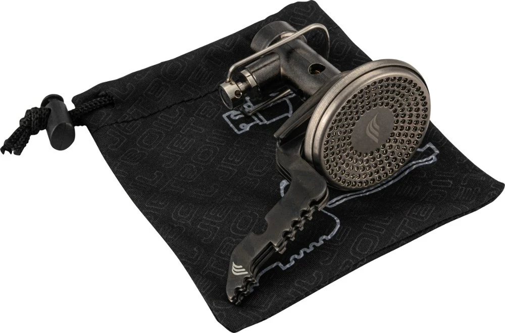 - Stand-alone stove with titanium burner and 0.8 liter FluxRing cook pot quickly boils 0.5 liters of water in just 2.5 min.