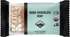 Loaded with organic peanut butter, gluten-free oats, dark chocolate, peppermint extract and cacao powder, Kate’s Real Food Dark Chocolate Mint bar boosts your energy with refreshingly cool flavor.