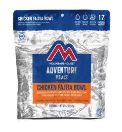 Made with chicken, bell peppers, rice, black beans, corn, onions and seasonings, the Mountain House Chicken Fajita Bowl is sure to spice up any backcountry adventure.