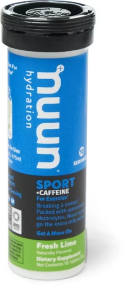 Breaking a sweat? Pop a NUUN Sport + Caffeine hydration tablet into your water to help you go the extra mile. These tablets are packed with electrolytes and caffeine from organic green tea extract.