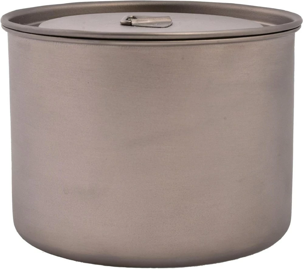 Designed for the gram-counting backpacker, the 900 ml OliCamp Titanium Space Saver pot can carry a fuel canister so you can save space in your pack for important things—like extra snacks.