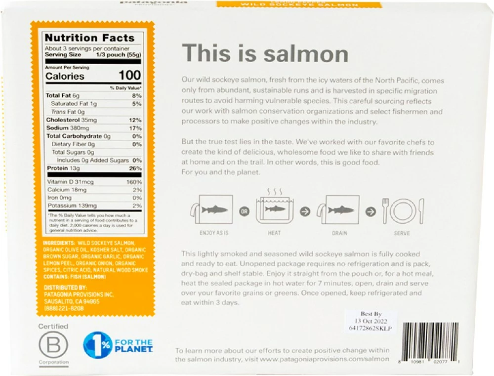 Patagonia Provisions Wild Sockeye Salmon, fresh from the icy waters of the North Pacific, comes only from abundant, sustainable runs and is harvested so as to avoid harming less abundant species.