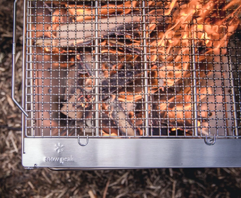 Enjoy the relaxing ambiance of a real campfire without leaving a mark. The large Snow Peak Takibi Fire & Grill keeps hot coals away from delicate ground cover so you can truly leave no trace.