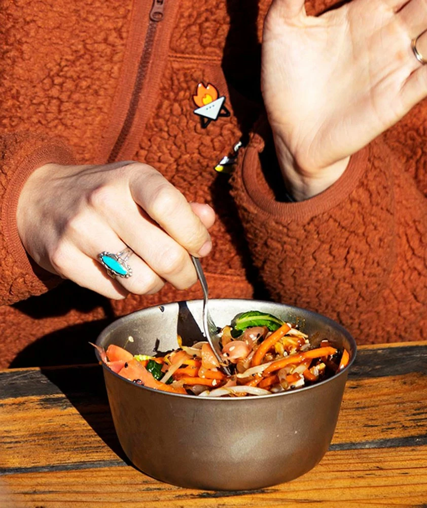 Be civilized and eat out of a bowl in the backcountry–this titanium bowl weighs only 1.9 ounces, making your hiking time between meals less painful.