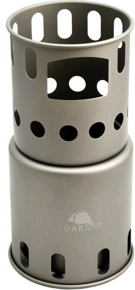 A smaller version of an award-winning stove, the small TOAKS Titanium Backpacking Wood Burning Stove is especially compact, lightweight and easy to light a natural wood fire with.