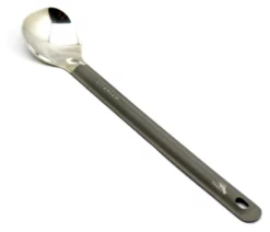 Ideal for eating, stirring or scraping the last scraps from your dehydrated meal pouch, the TOAKS Titanium Long Handle Spoon with Polished Bowl is a durable, light addition to your ultralight kit.
