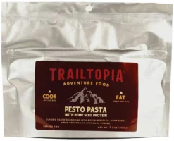 A classic Italian meal can be hard to come by in the backcountry. Trailtopia Pesto Pasta comes to the rescue with classic pesto sauce and hemp seed protein smothering cheesy rotini noodles.